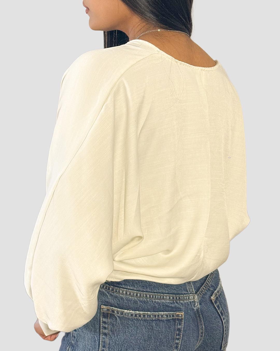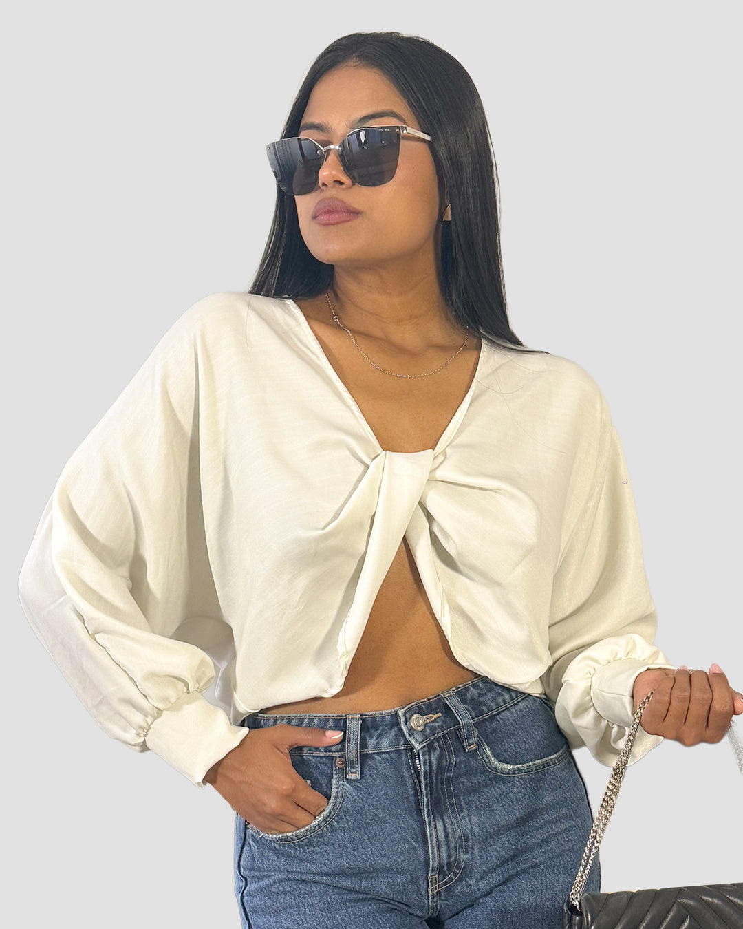 Descripción: Blusa elegante con nudo en escote, manga larga.