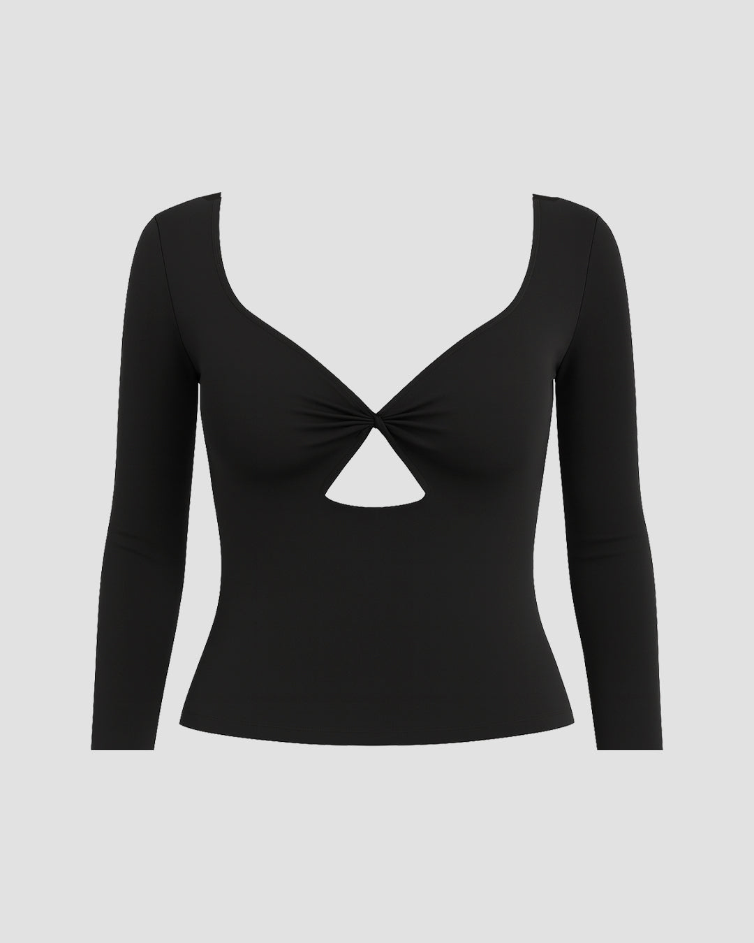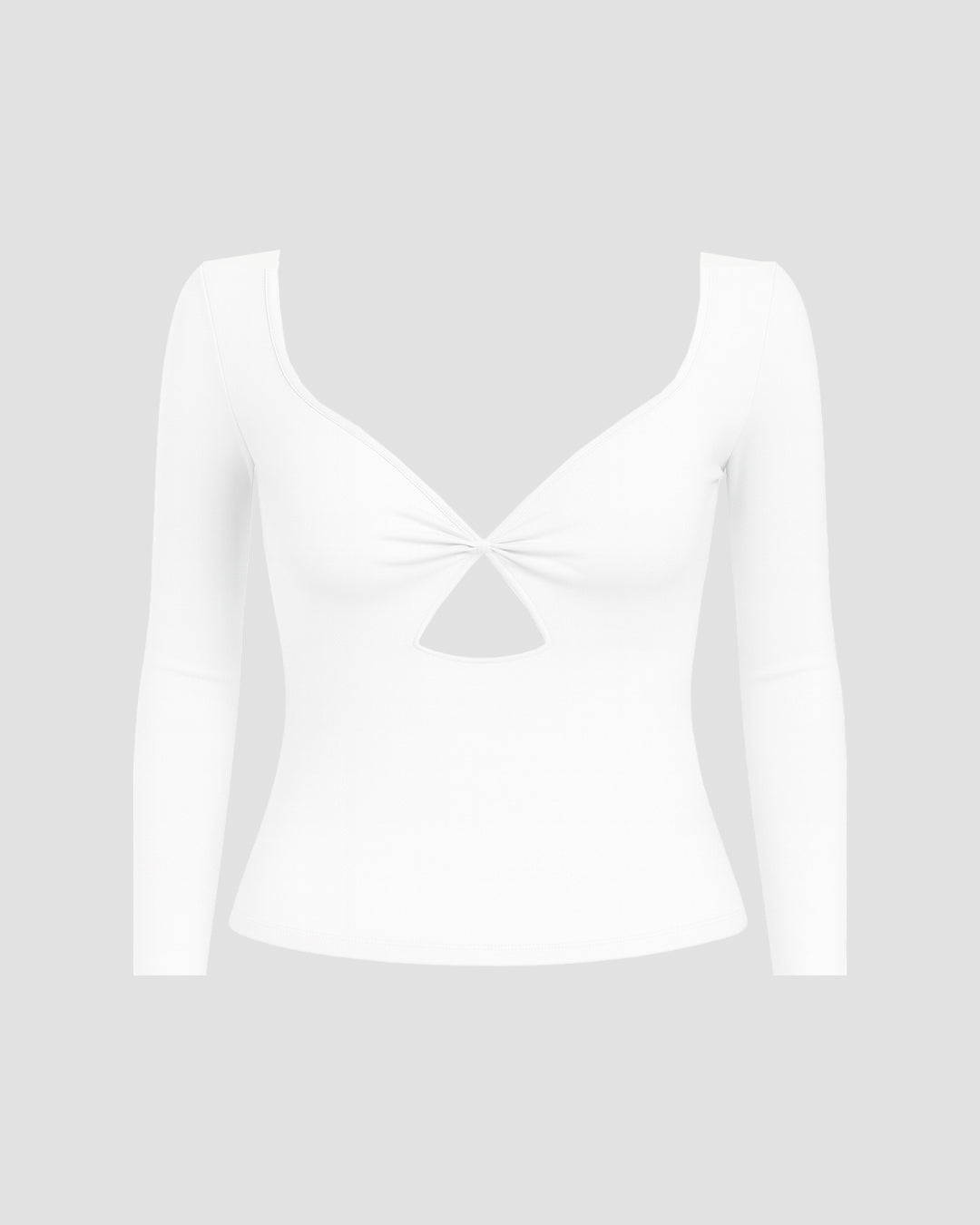 Descripción: Blusa manga larga con entorchado en copas y apertura pequeña en zona del abdomen.