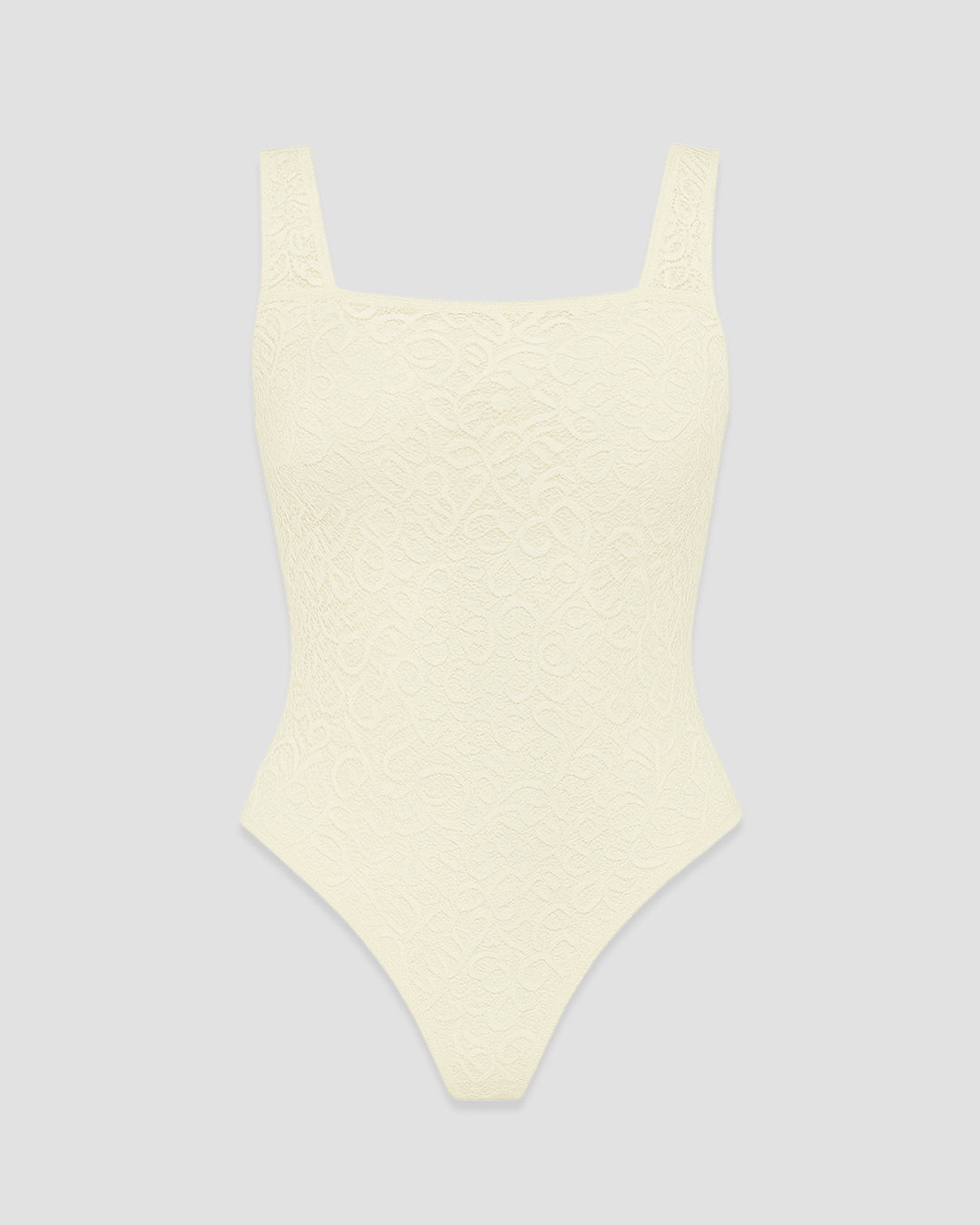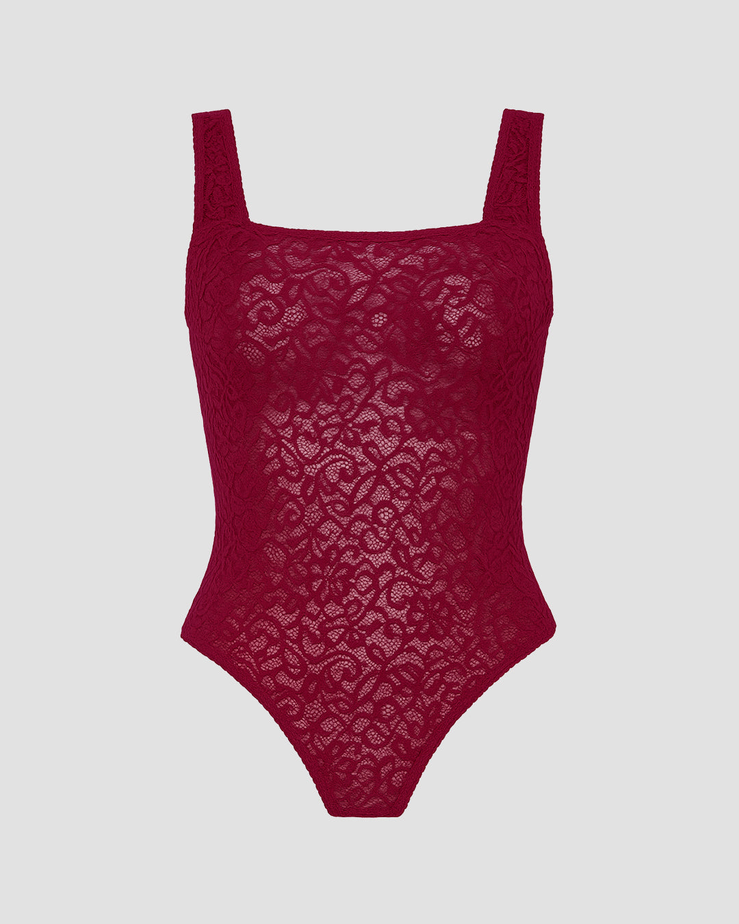 Descripción: Body con tela encaje floreado de escote recto y tirantes gruesos